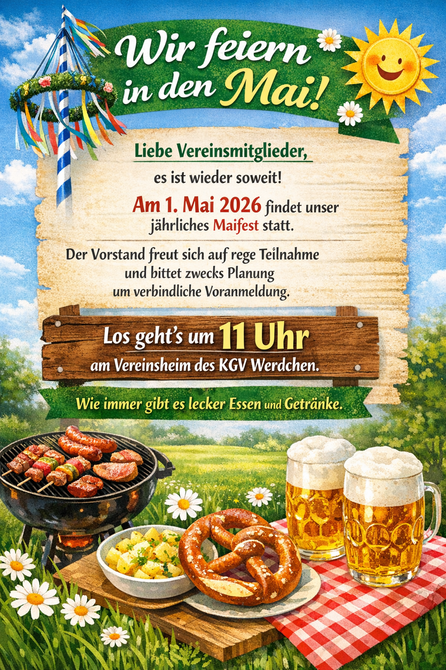 Infos zu Terminen, Kosten etc. gibt unser Festwirt unter festwirt@kgv-werdchen.de